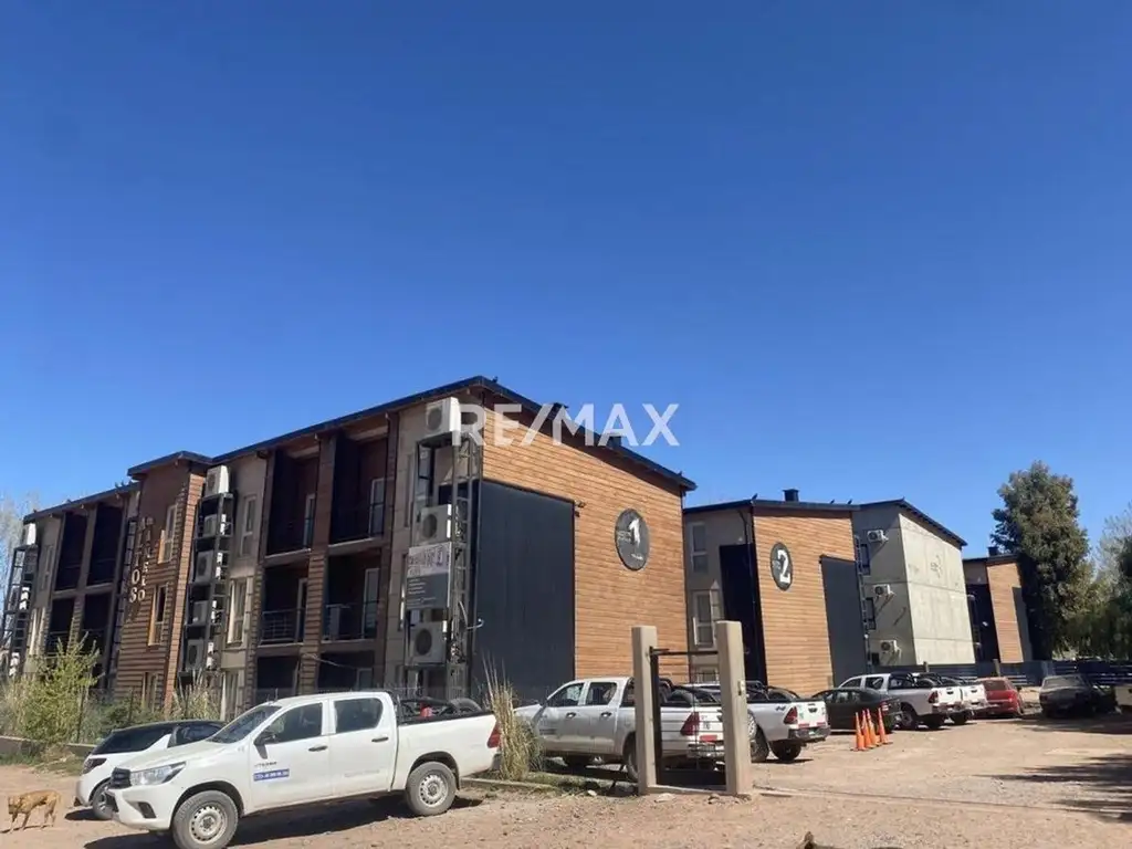 En el centro de Añelo, sobre un lote de 700 m2, forma parte de un Complejo de 4 edificios. El edificio se encuentra cerca del centro comercial del pueblo, estaciones de servicio, banco, hospital, etc.