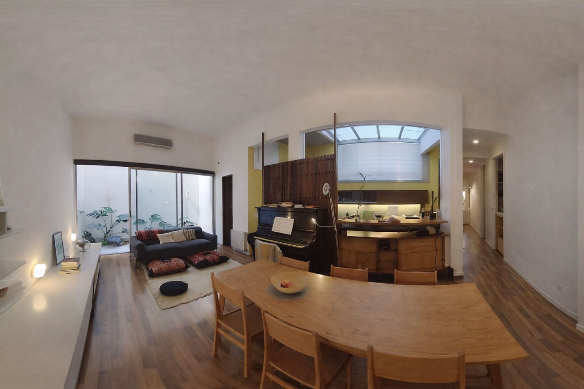 -Living comedor amplio y luminoso, con doble altura en los techos y salida directa al patio privado, perfecto para disfrutar de los días al aire libre.