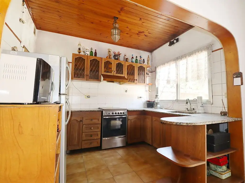 Desde la cocina comedor, accedes a un fondo con patio y jardín. Depósito de guardado y lavadero. Agua caliente por Termotanque. Área con parrilla y mesada exterior con bacha.