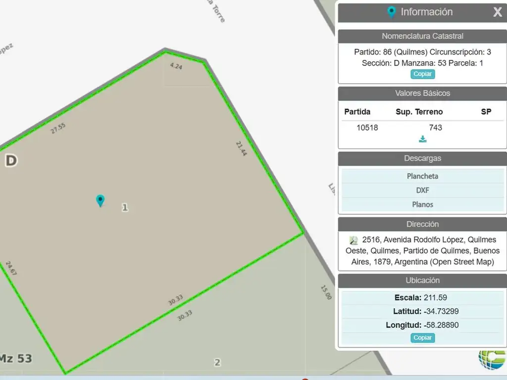 Este terreno se encuentra ubicado sobre la calle Rodolfo López en Quilmes Oeste, una zona consolidada y de fácil acceso. La propiedad cuenta con excelente conectividad, a pasos de avenidas principales y a minutos de centros comerciales, escuelas y hospitales.