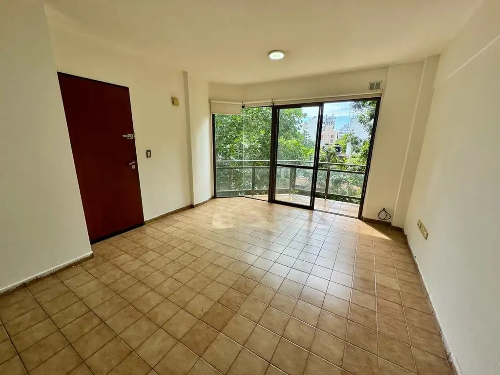 Cuenta con 43 m2 aproximados el departamento mas otros 14m2 de la cochera descubierta