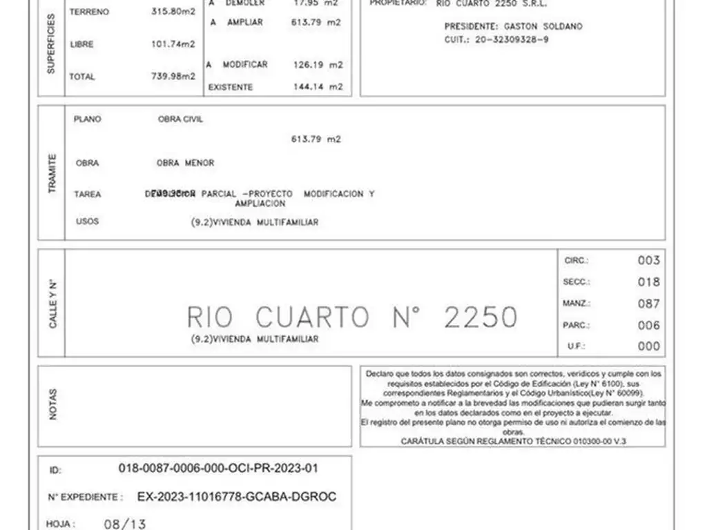 El lote se encuentra ubicado en la calle Rio Cuarto al 2250.