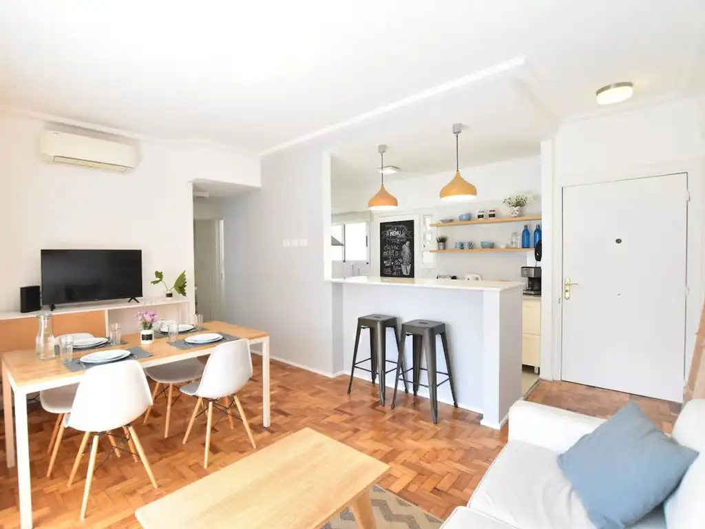 La propiedad se compone de dos dormitorios amplios, living/comedor, cocina integrada, un baño completo, toilette y lavadero. Se destaca por su excelente estado de conservación y luminosidad natural, potenciada por su ubicación en altura.