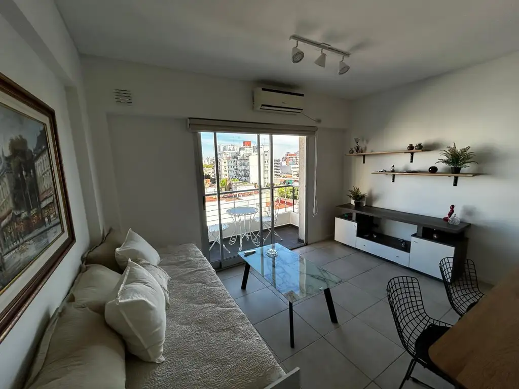 Dos ambientes con cochera fija. Balcon. Living comedor, cocina, baño y habitacion.