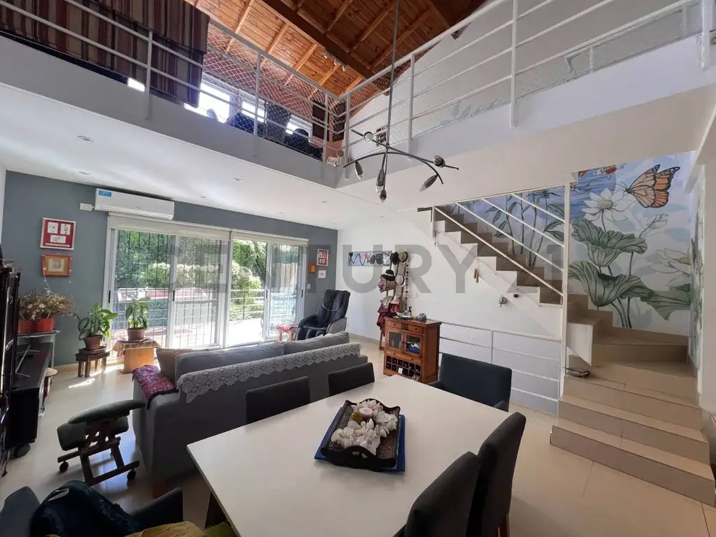 • Amplio living comedor con techos en doble altura