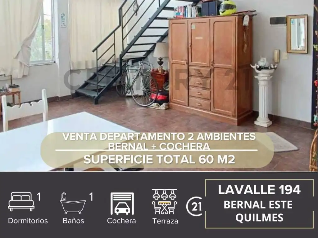 VENTA DEPARTAMENTO 2 AMBIENTES BERNAL + COCHERA