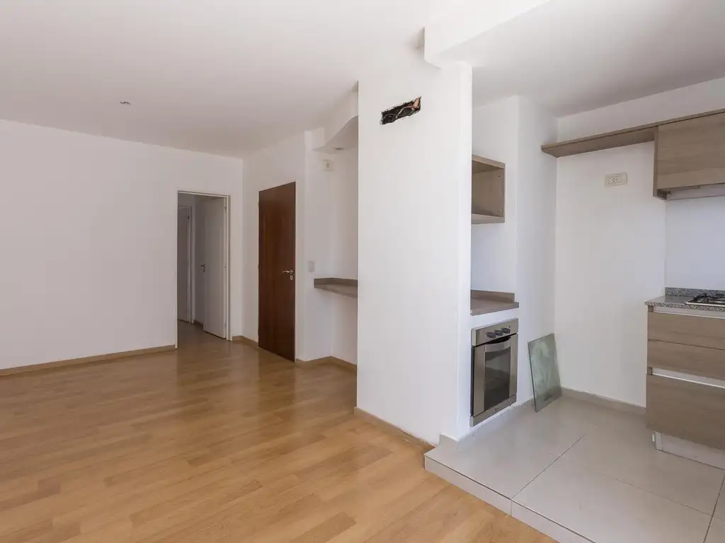 Su ingreso es por el living comedor, cuenta con cocina con horno y anafe empotrados a gas, ventilación natural, balcón al frente con espacio de lavarropas, dormitorio y baño.