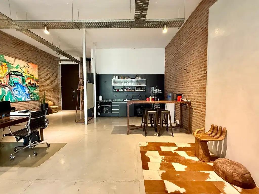 Departamento tipo loft de estilo moderno y vanguardista, con espacios amplios y excelente ingreso de luz natural. Cuenta con cocina integrada equipada con muebles completos, alacena y bajo mesada, con salida al balcón.