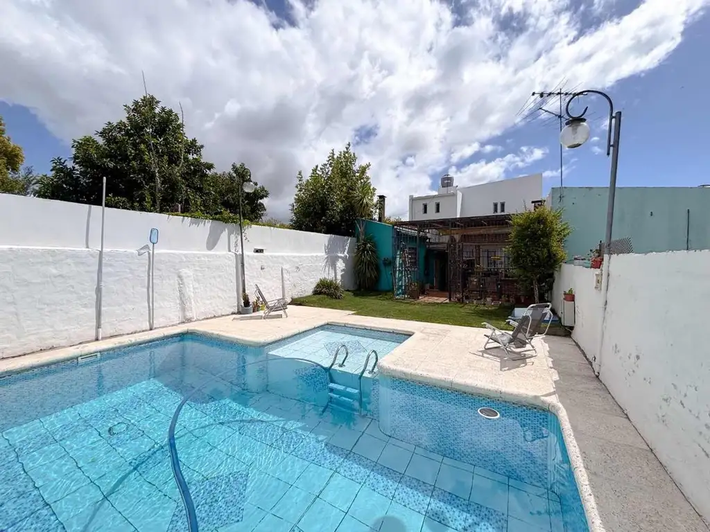 En planta baja cuenta con cochera pasante para dos autos, living, lavadero cubierto y una cocina equipada con muebles sobre y bajo mesada. Además, dispone de baño completo, living comedor y un patio interno que aporta luz natural a los ambientes. Hacia el fondo se encuentra una galería cubierta con parrilla, taller de trabajo y jardín con pileta.