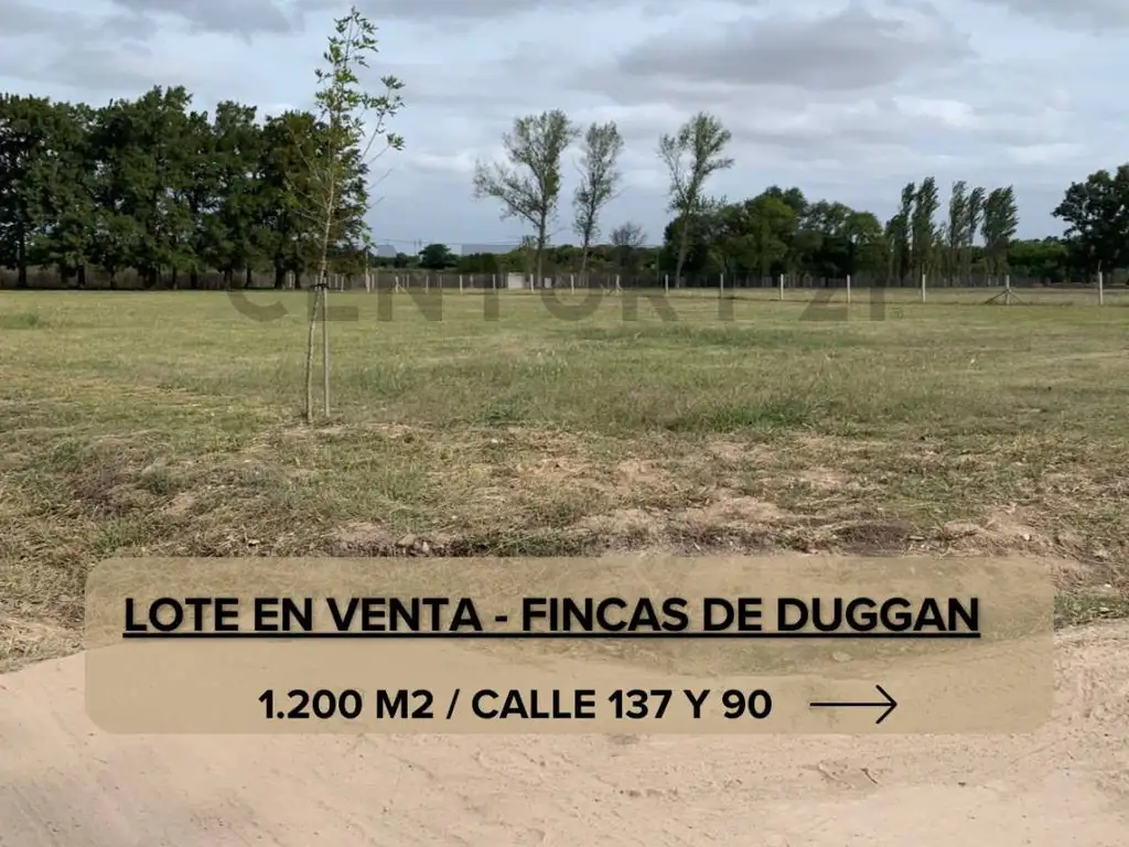 Excelente lote de 1.200 m² ubicado en Fincas de Duggan, un barrio cerrado desarrollado sobre 52 hectáreas en Av. 137 y 90, a tan solo 10 minutos del centro de La Plata.