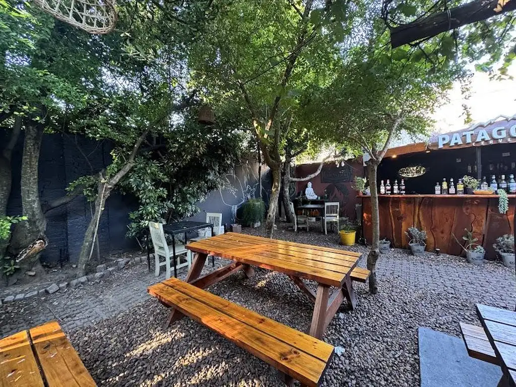 Uno de los grandes diferenciales del inmueble es su patio exterior con pérgola natural y vegetación, que permite generar un espacio gastronómico al aire libre muy atractivo.