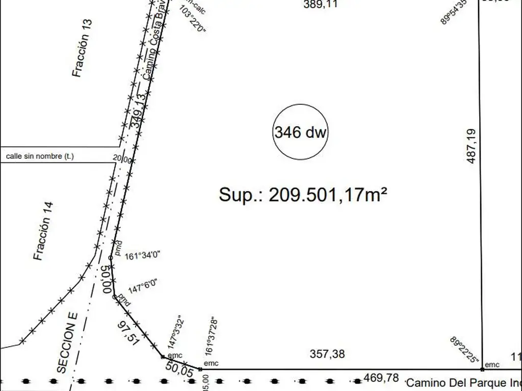 Excelente fracción en una inmejorable ubicación, en la intersección del Camino de Ingreso al Parque (357 mts) y Camino Costa Brava (349 mts), ochava (97 mts).
