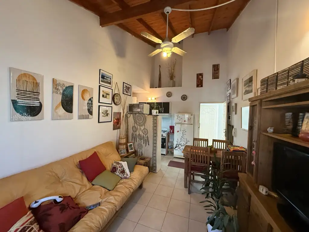El departamento cuenta con un diseño funcional que incluye un baño completo, una cocina bien equipada que se integra a un comedor muy espacioso y un dormitorio con balcón que además, dispone de un entrepiso versatil que puede ser utilizado como depósito, optimizando así el espacio disponible.