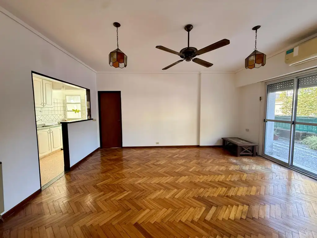 Ingresamos a un amplio living-comedor con cocina semi integrada. Muy luminoso, con pisos de madera y un gran ventanal que permite salir a un balcón corrido, también de cómodas dimensiones.