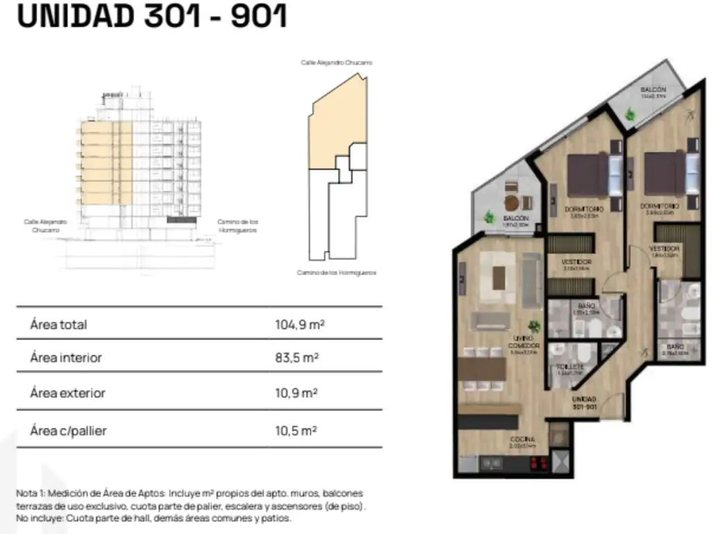 Va a ser un edificio, con características particulares, ya que tendrá ambas fachadas principales, una hacia la calle Alejandro Chucarro, y la otra hacia Camino de los Hormigueros. Sera un edificio de viviendas, en tipología de monoambiente, un dormitorio, y dos dormitorios. En el último piso tendrá barbacoa con parrillero sala de ejercicios y lavadero común.