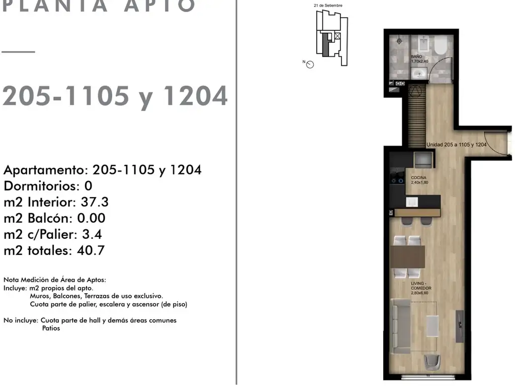 El mismo, se encuentra ubicado sobre la calle 21 de Setiembre esquina Bonpland, en el piso 7 al contrafrente.