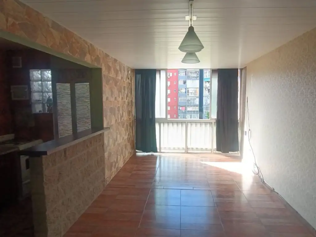 Posee: Living integrado con la cocina con ventanal de 3m x 3m, barra desayunadora, dos habitaciones, una con placard, ambas con ventana al patio y persiana de metal, cocina completa y artefacto de cocina nuevo, lavadero con tender plegable, calefón nuevo bajo consumo, canilla y desagüe para lavarropas, baño completo con ducha y media mampara, la entrada principal al depto. posee una reja de seguridad.