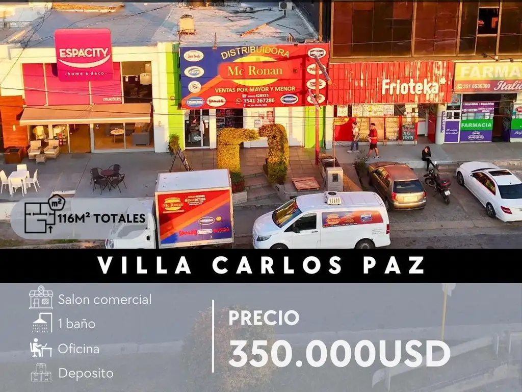 LOCAL COMERCIAL CON EXCEPCIONAL UBICACIÓN EN VILLA CARLOS PAZ