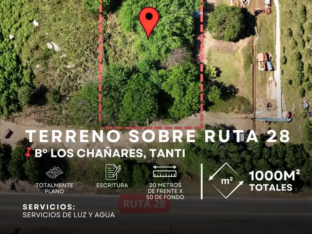 ESPECTACULAR TERRENO DE 1000M² EN COLECTORA DE LA RUTA 28, DIAGONAL A LA SHELL. LOS CHAÑARES- TANTI