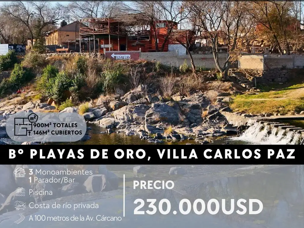 PARADOR/BAR 3 MONOAMBIENTES CON COSTA DE RIO PRIVADA EN PLAYAS DE ORO, VILLA CARLOS PAZ