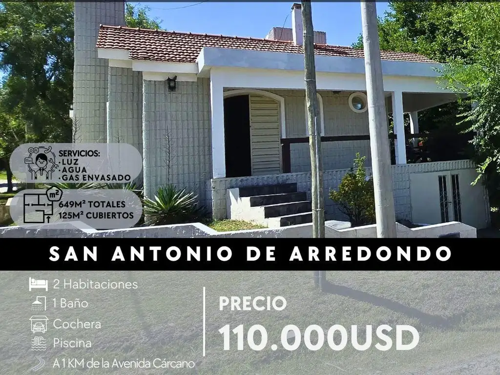 Venta Chalet De 2 Dormitorios Con Pileta A 400mts Del Rio En San Antonio De Arredondo