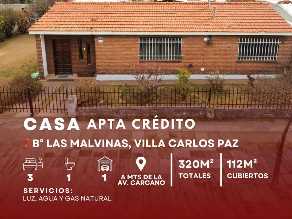 Propiedad denominada PH de construcción tradicional en planta única. Ubicada en B Malvinas, Carlos Paz a mts de Av. Cárcano y zona aerosilla.