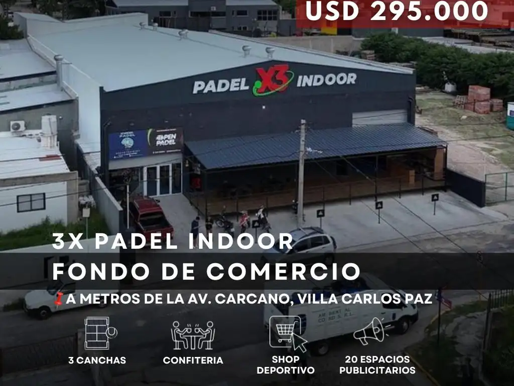 Se vende fondo de comercio X3 Pádel Indoor, club premium en pleno funcionamiento y de gran renombre en el ámbito del pádel a nivel provincial. Con 1 año y medio de antiguedad, ubicado a 100 m de Av. Cárcano y a 5 minutos del centro de Villa Carlos Paz.