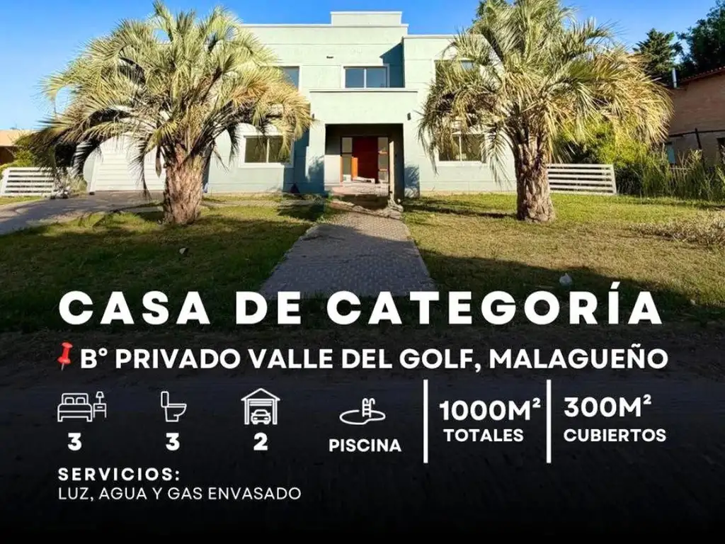 Venta Exclusiva Casa De Categoría 3 Dormitorios y Pileta Climatizada En Valle Del Golf - Malagueño