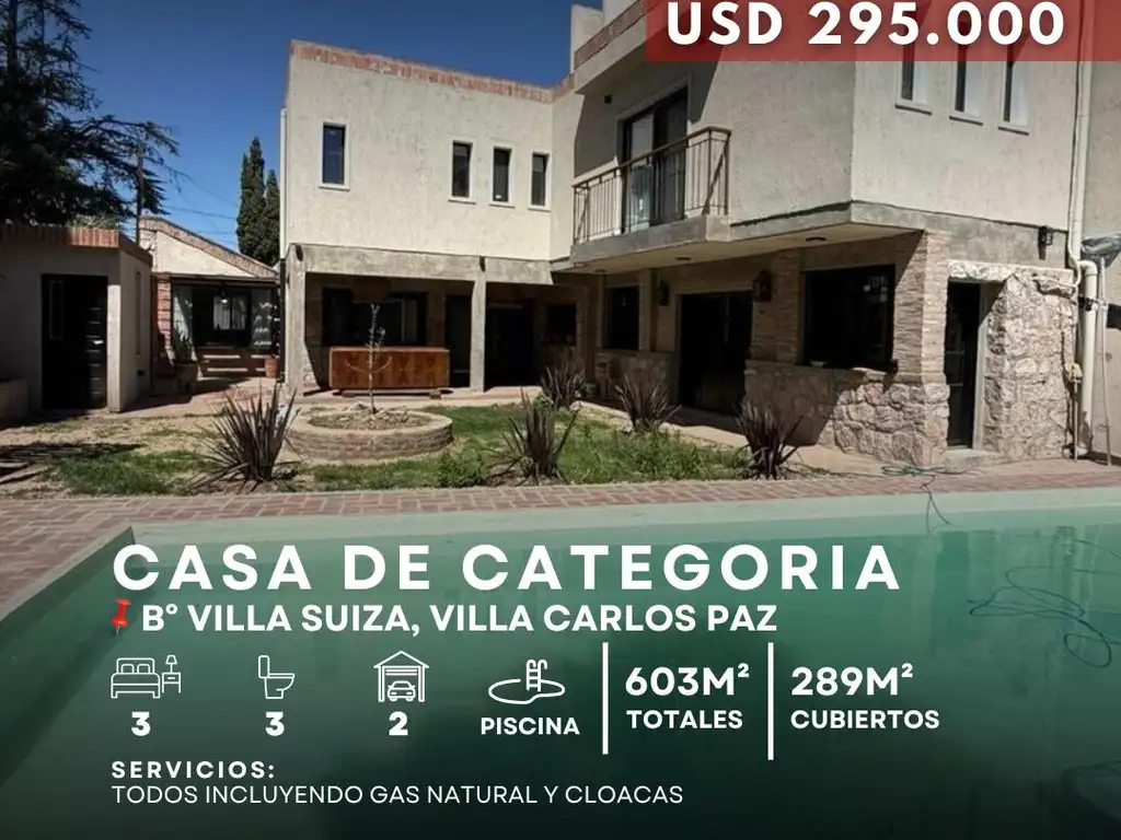 Venta Casa De Categoría 3 Dormitorios Con Piscina Y Gas Natural En Villa Suiza, Villa Carlos Paz