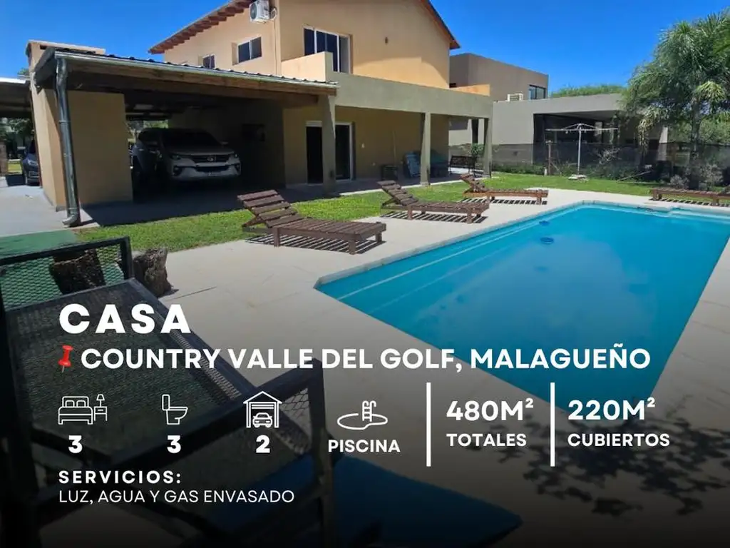 Venta Casa 3 Dormitorios 3 Baños Con Amplia Galería Y Pileta En Country Valle Del Golf - Malagueño