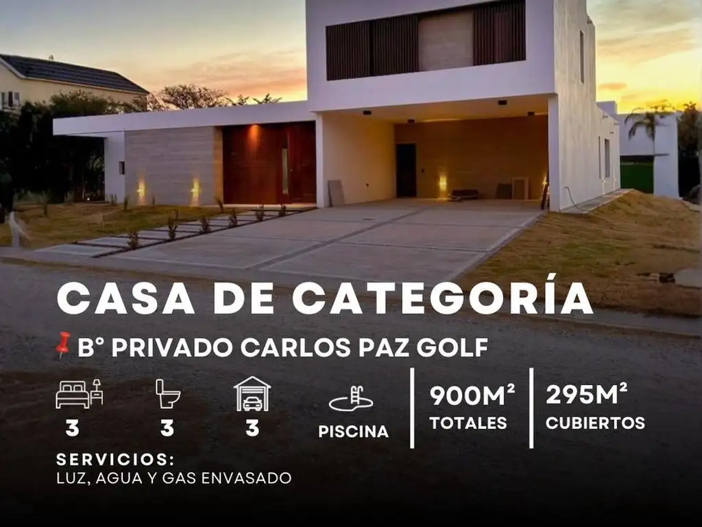 Venta Casa De Categoría A Estrenar En Country Carlos Paz Golf– Primera Etapa - Seguridad y Piscina
