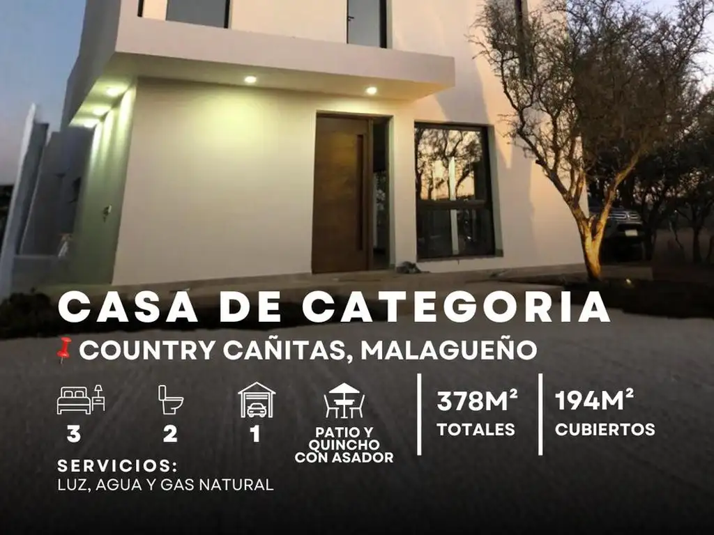 Venta Casa De 3 Dormitorios con Quincho, asador y Cochera en Country Cañitas, Malagueño