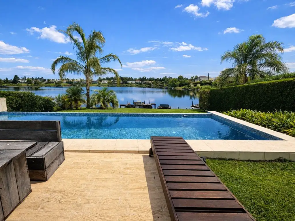 Moderna casa en alquiler totalmente amueblada, desarrollada sobre un lote de 825 m² a la laguna, con muelle propio, amplios espacios sociales y una imponente vista abierta al agua.