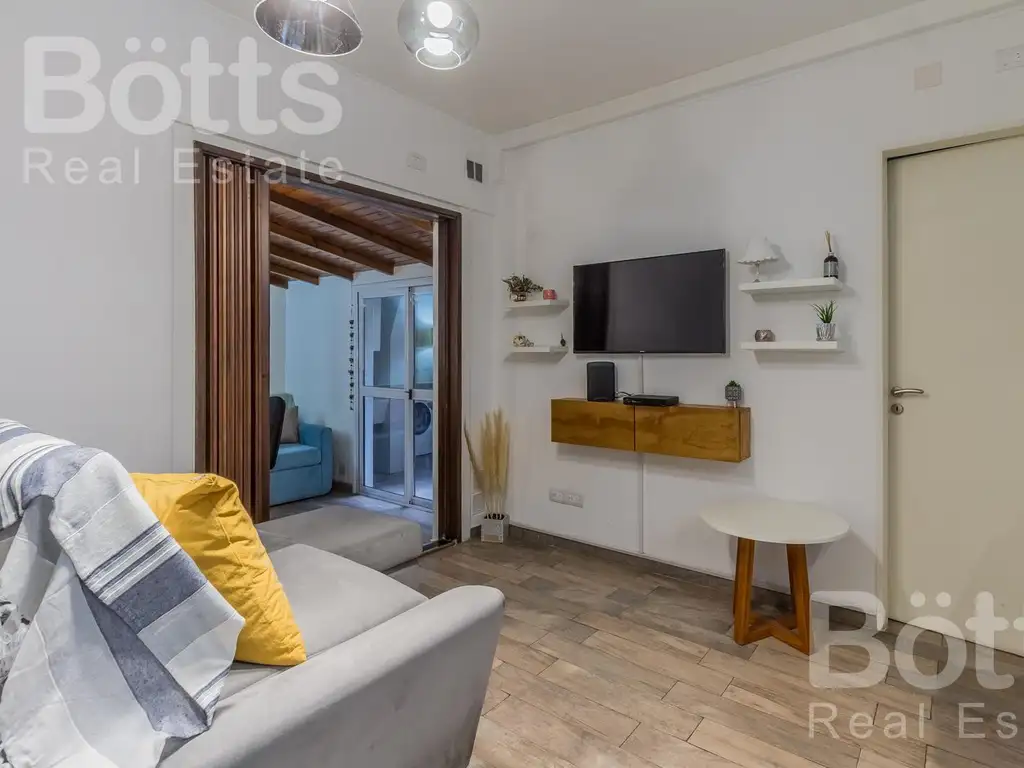 La unidad se compone de un luminoso living comedor, cocina funcional con lavadero, dormitorio en suite con placares, toilette de recepción y un agradable patio, ideal para disfrutar de momentos al aire libre. Además, posee parrilla techada, un diferencial muy valorado para reuniones y uso cotidiano.