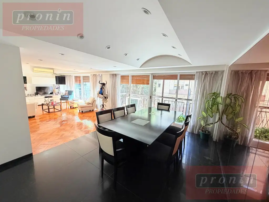 Amplio living-comedor apaisado, muy luminoso, con ventanales y salida a balcón corrido al frente.