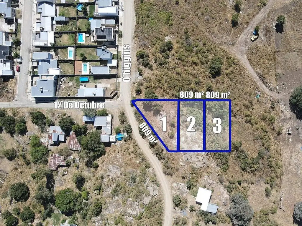 Tres lotes de 809 m² cada uno, ubicados en entorno privilegiado, entre zona Calvario y Entre Sierras, y con increíbles vistas abiertas al paisaje serrano. Frente a Barrio Procrear, en un sector consolidado y en constante desarrollo.