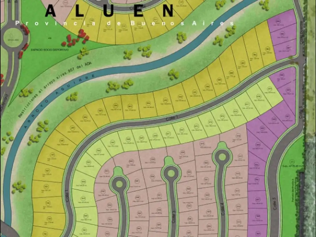 El presente terreno se encuentra en el lote numero 44 con cercanía a la entrada e interno lo que le da muy buena ubicación dentro del barrio haciéndolo seguro y de fácil entrada y salida. Aluen se encuentra ubicado en zona sur a solo 35´ del centro de la Capital Federal y a 10´ del Aeropuerto Internacional Ministro Pistarini, sobre el Km 40 de la autopista Ezeiza-Cañuelas.