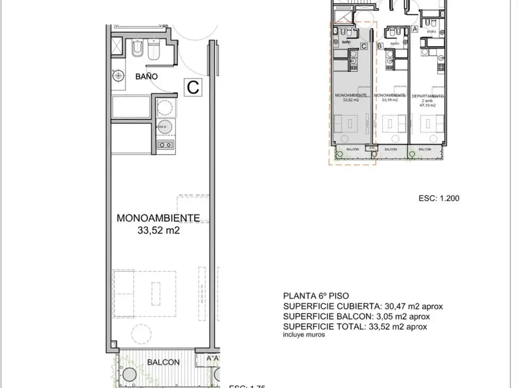 Monoambiente con balcón – Núñez – 33,53 m² Totales