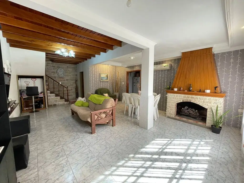 EMPLAZADA HACIA EL FONDO ENCONTRAMOS LA CASA. NOS RECIBE UN AMPLIO Y LUMINISO LIVING COMEDOR CON HOGAR. LA COCINA ESTA COMPLETAMENTE AMUEBLADA, DESDE DONDE PASAMOS AL LAVERDERO, CON SALIDA AL EXTERIOR. EL BAÑO DE PLANTA BAJA CUENTA CON DUCHA.