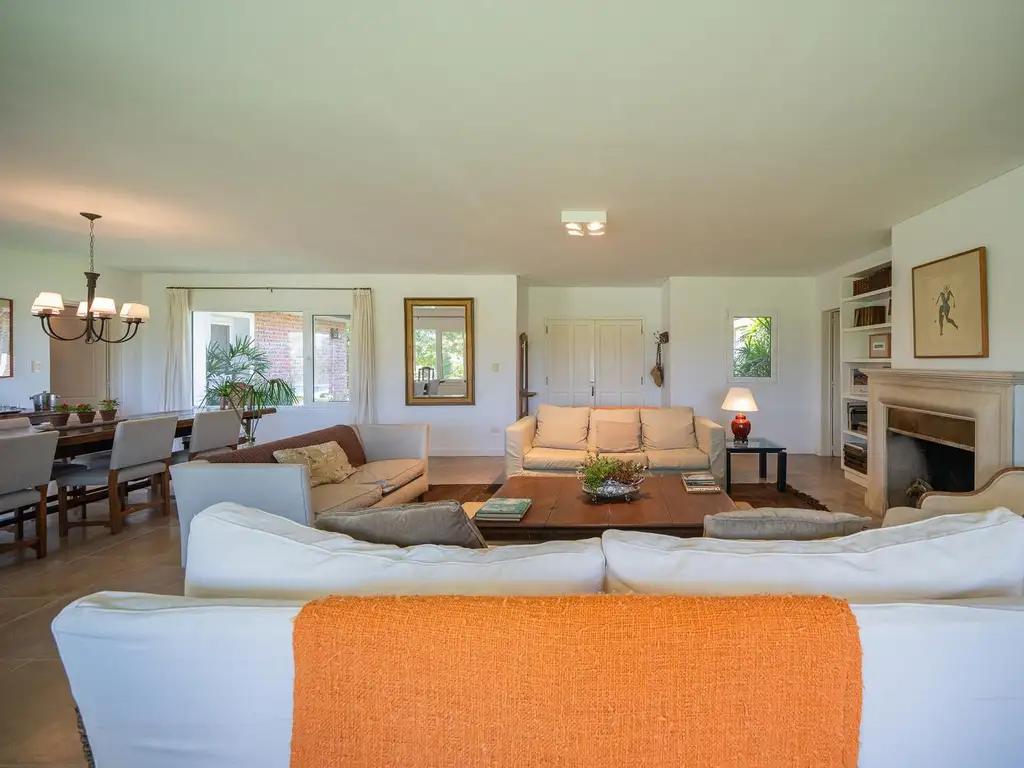 Al ingresar, encontramos un cómodo livingcomedor con chimenea.