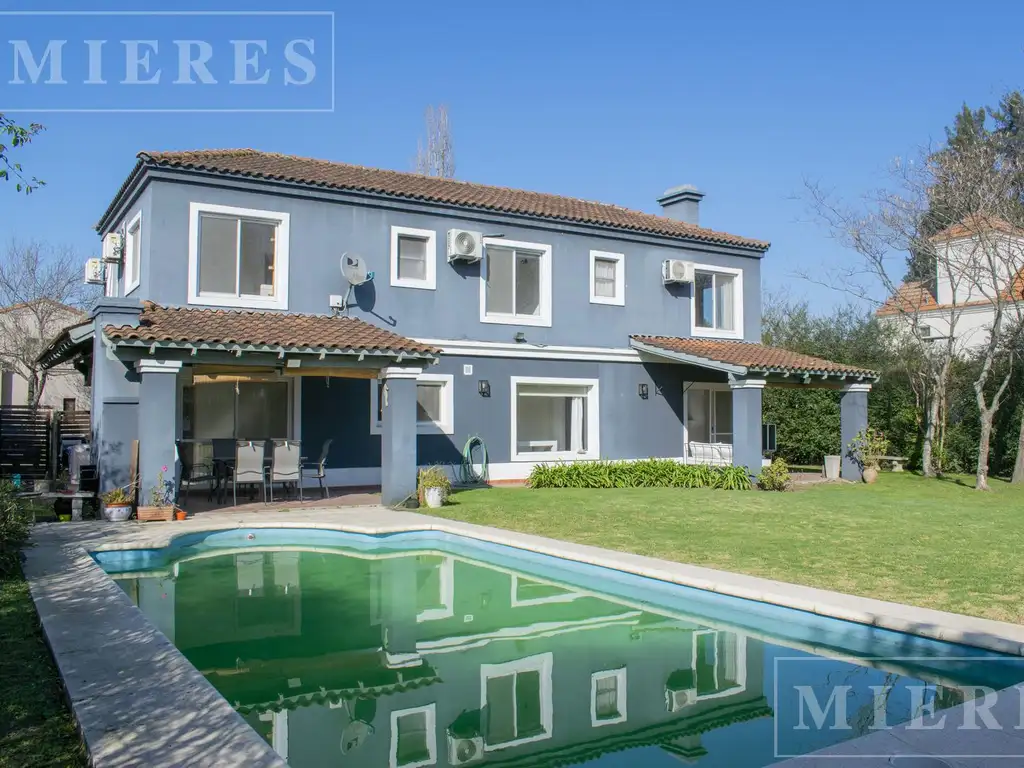 Exterior: galería con parrilla. Jardín con pileta.