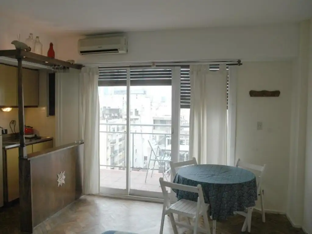Departamento 1ambiente de 25 m² para dos huéspedes, ubicado en piso trece, contrafrente, silencioso, muy luminoso, con hermosas vistas y con balcón.