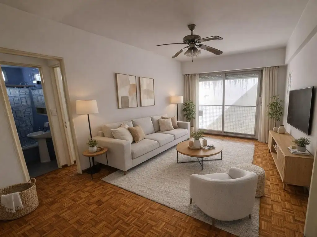 Cuenta con living comedor con balcón francés, dormitorio con muy buenas dimensiones, ambos con persianas, baño completo con luz natural, cocina a gas y lavadero independiente con conexión para lavarropas.