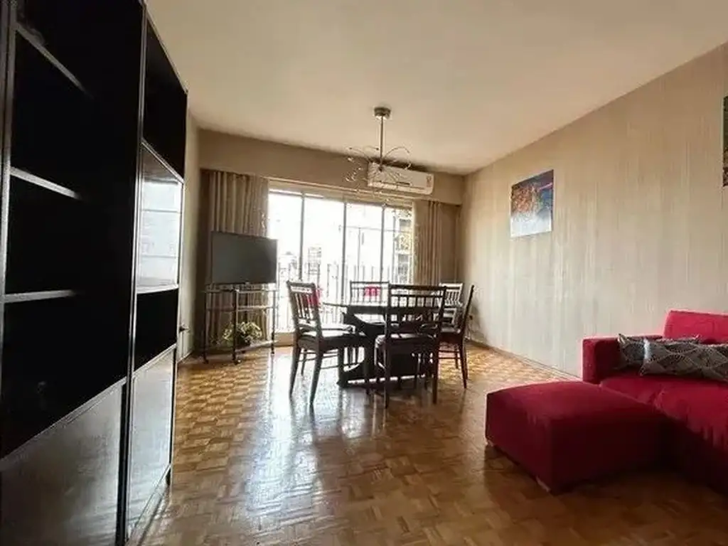 Apto crédito. Departamento de 4 ambientes, al frente. 11º piso. Superficie total de 105m2, cubierta de 95m2 y descubierta de 5m2. Tres dormitorios, tres baños. Living-comedor, cocina. Balcón. Dependencia de servicio. Palier semi privado. Doble circulación. Agua caliente central y calefacción por losa radiante. Muy buen estado, luminoso. Pisos de parquet.