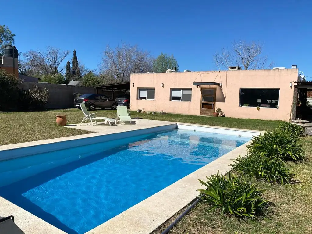 La propiedad ofrece además un quincho semicubierto de 50 m² con parrilla, ideal para reuniones sociales, y cochera techada con espacio para dos autos. La pileta cuenta con bomba y luces, lista para disfrutarla durante todo el verano.