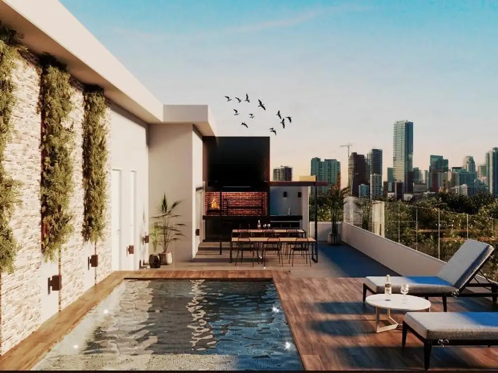 La unidad se destaca por su diseño moderno, funcional y muy luminoso. Al ingresar encontramos un amplio living-comedor con cocina integrada, equipado con muebles de alto y bajo mesada y espacio para electrodomésticos, creando un ambiente cómodo y práctico para la vida diaria.