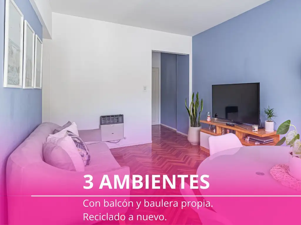DESCRIPCIóN DE LA UNIDAD FUNCIONAL:-Departamento 3 ambientes reciclado con balcón al contrafrente y baulera.