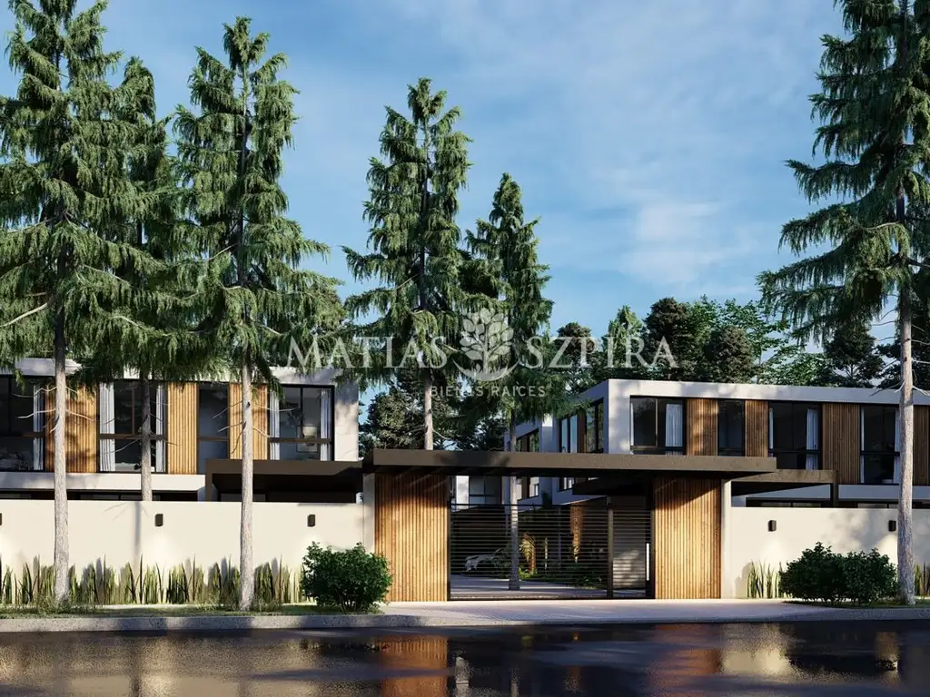 Cada unidad cuenta con tres habitaciones, la principal en suite con ampliovestidor, jardines privados con pileta, cocheras dobles individuales y una callede doble acceso común.