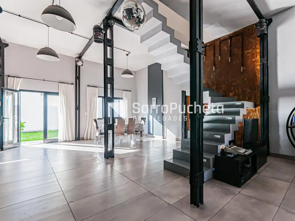Se ingresa a la propiedad por un amplio y luminoso living comedor, con cocina integrada que aporta un concepto moderno y funcional. Los espacios se destacan por sus detalles de diseño y calidad constructiva, generando un ambiente cálido y contemporáneo. En planta baja cuenta además con toilette de recepción y acceso directo a la cochera cubierta con portón eléctrico.