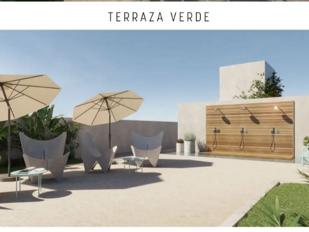 El edificio cuenta con terraza verde de usos múltiples con duchas y solárium.